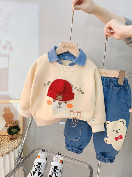 ست بلوز شلوار راحتی بچگانه طرح خرس کله فندقی 9 ماه تا 5 سال