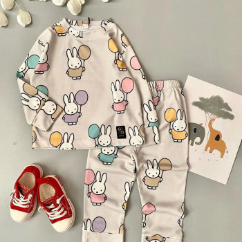 ست بلوز شلوار راحتی بچگانه طرح خرگوش و بادکنک 9 ماه تا 5 سال