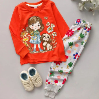 ست بلوز شلوار بچگانه طرح دختر مزرعه 3 تا 6 سال