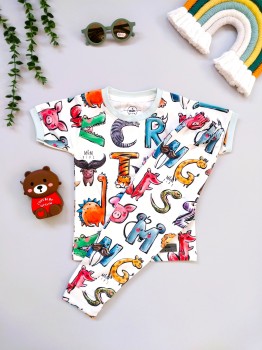 ست تیشرت شلوار راحتی بچگانه طرح الفبا مناسب 1 تا 10 سال