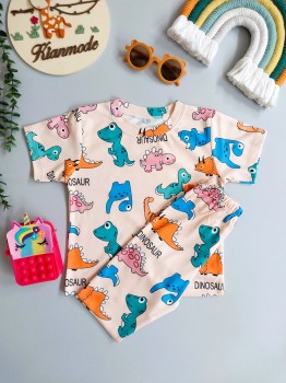 ست تیشرت شلوار راحتی بچگانه طرح دایناسور مناسب 1 تا 5 سال