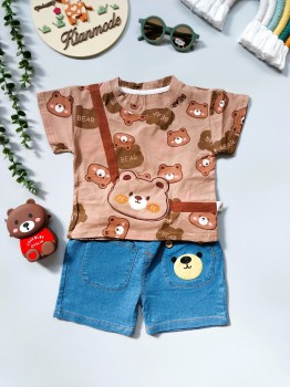 تیشرت و شلوارک بچگانه خرسی کیف سینه 9 ماه تا 5 سال