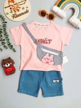 ست تیشرت شلوارک دخترانه بچگانه طرح خرگوش مناسب 1 تا 5 سال