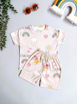 تیشرت و شلوارک بچگانه طرح رنگین کمان مناسب 1 تا 4/5 سال